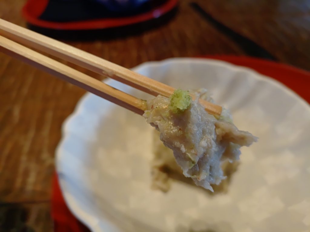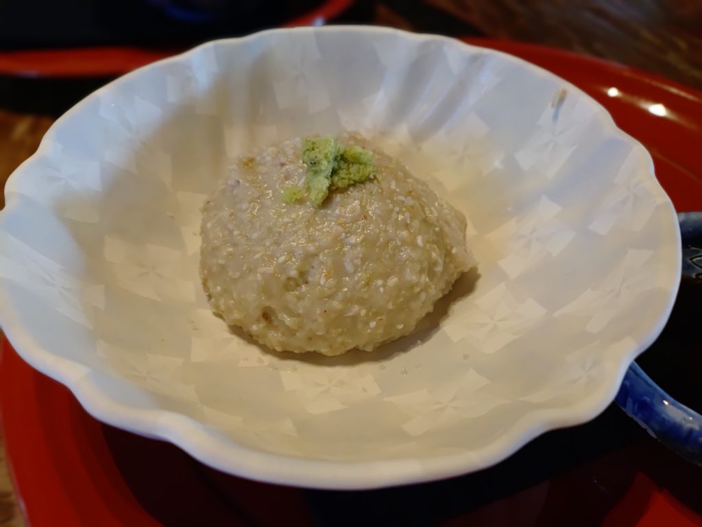 先ずは蕎麦がきです。香りも良く、少しのワサビと醤油をつけて頂きました。ほんのりと香るそばの香りが堪らないです。