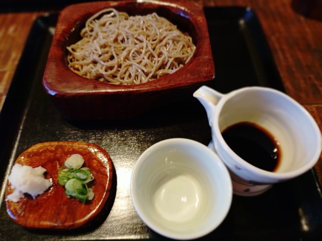せいろの田舎そばです。そばの香りも強く、つなぎは無しの十割なのでしょうか、短めの蕎麦でした。それを辛味大根とネギを薬味として食べました。