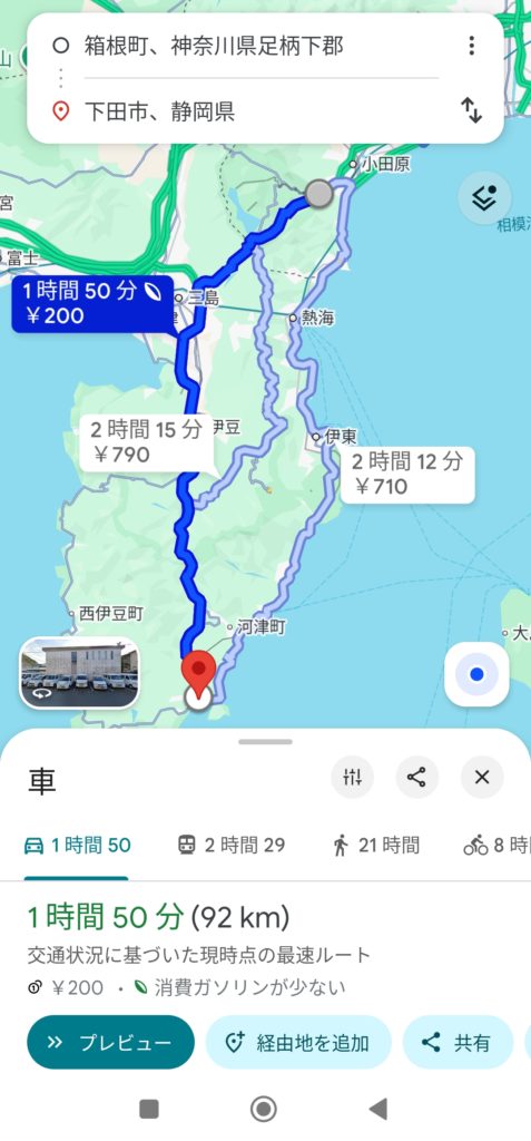 そもそもけっこう知らなかったと言うか、まぁ箱根あたりから下田なんてちょいちょいでしょうなんて思ってたら約100キロあるそうで
