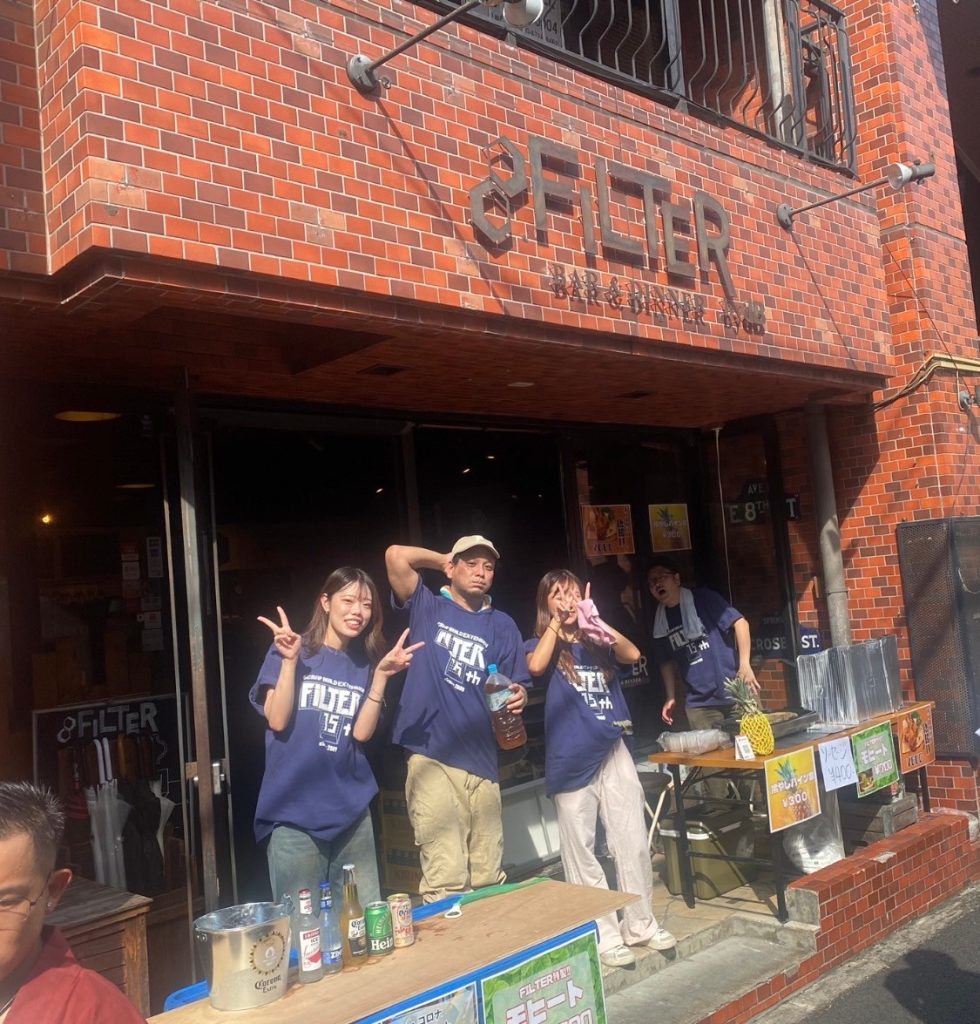 炎天下の中、FILTERスタッフだけでなく、常連さんや元スタッフのサユリちゃんやヒロトにもお手伝いしてもらい本当に助かりました!