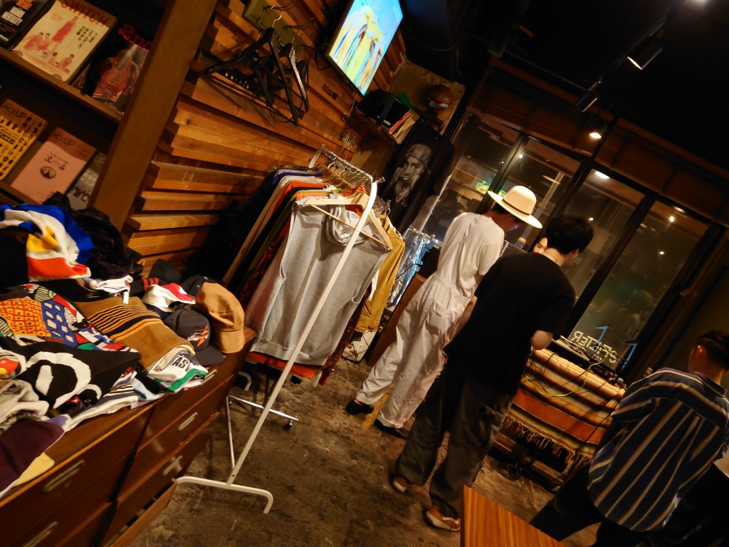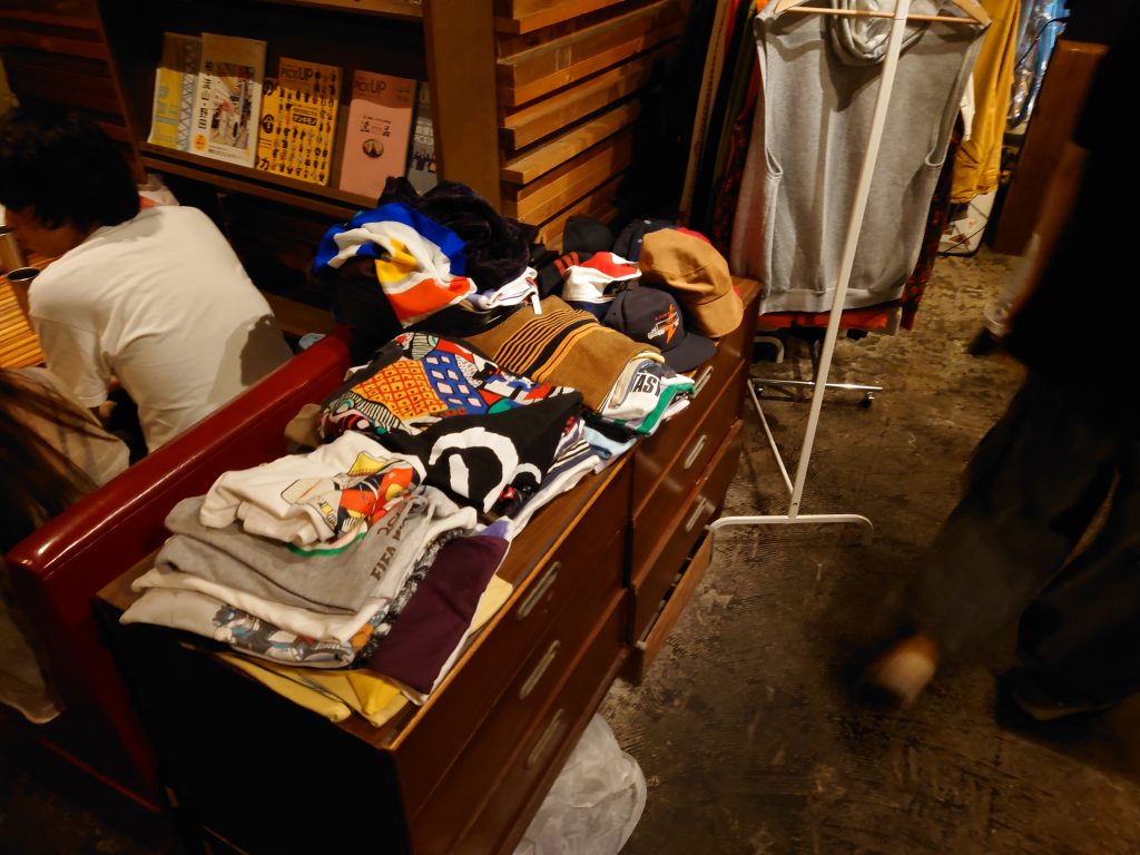 ってことで、0時からDJがプレイしつつ古着屋さんとコラボ営業!