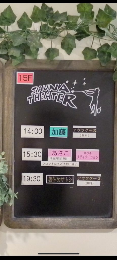 2階構造で、14階が受付とお風呂、15階が男女で入れるサウナシアターと休憩室があります