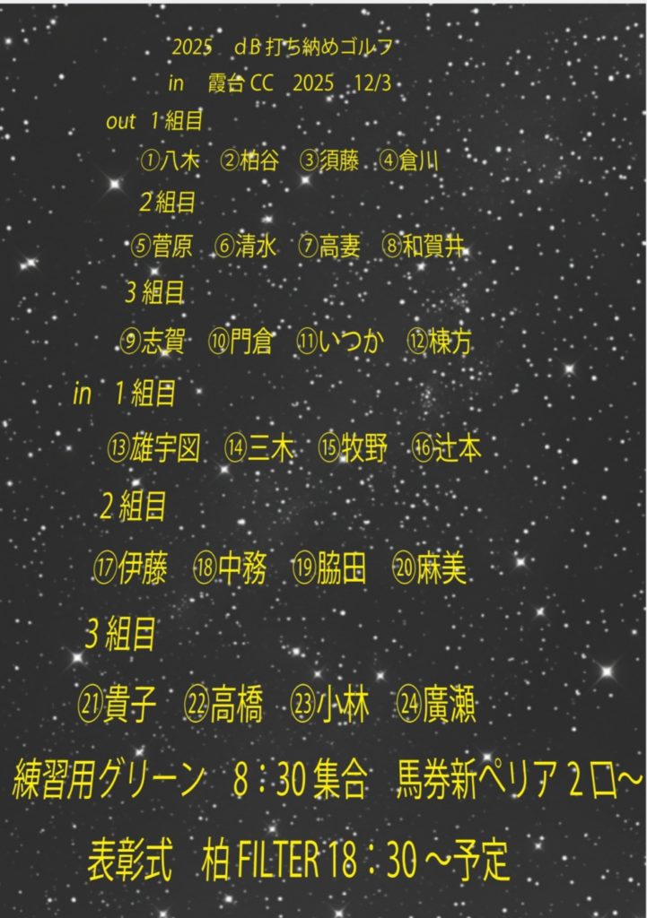 1ヶ月以上経ってしまいましたが12/3に打ち納めましたdBゴルフコンペ!こちらを毎度ながらkiss dBタカが担当したいと思います。