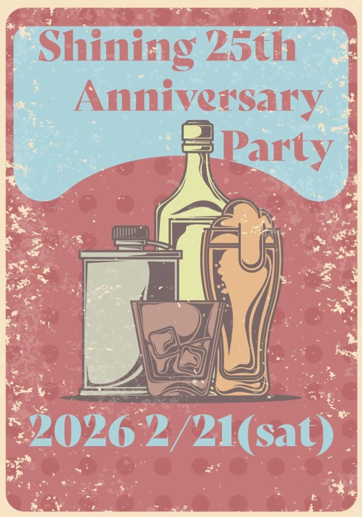 改めて今週土曜日の2/21はShining25thアニバーサリー!19時からオープンしておりますので、みなさま是非遊びに来てください♪