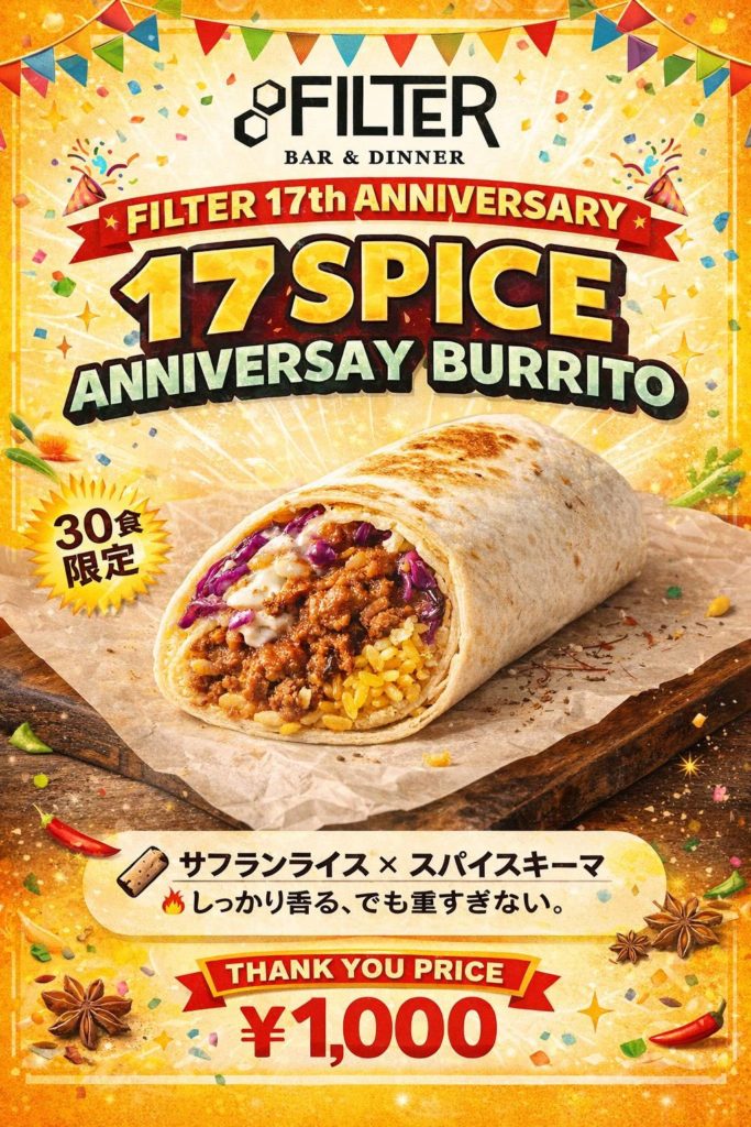 17周年にちなんで17種類のスパイスを使ったキーマカレーブリトー🌯
